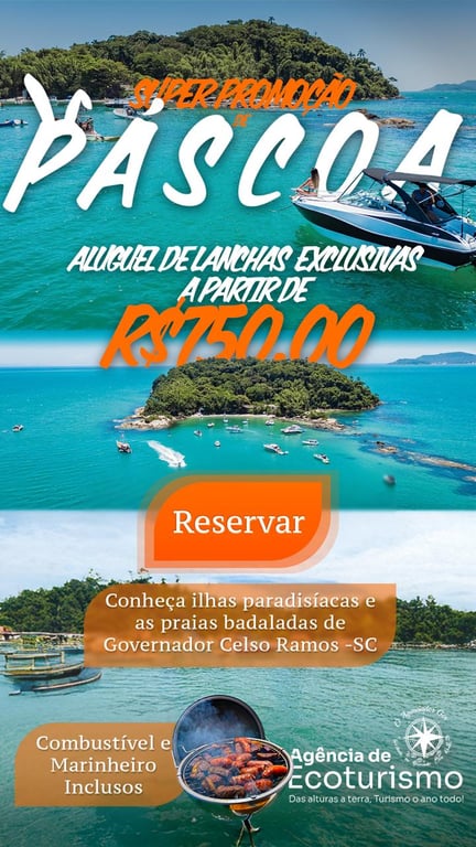 Um passeio de lancha exclusivo é uma experiência verdadeiramente especial. Imagine-se navegando pelas águas da costa esmeralda em Governador Celso Ramos-SC, sentindo o vento acariciar seu rosto enquanto desfruta do luxo e conforto de uma lancha de primeira classe. Você terá a oportunidade de explorar praias isoladas, visitar ilhas paradisíacas e descobrir recantos secretos ao longo da costa. A sensação de liberdade e privacidade é incomparável. A bordo da lancha, cada momento é uma celebração da vida, um presente do mar. Permita-se ser mimado por essa experiência única e exclusiva. Podemos te ajudar em seu próximo destino!